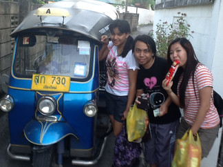 Just us having breakfast at 7-11 and Tuk Tuk (An auto rickshaw is a motorized development of the traditional pulled rickshaw or cycle rickshaw. Most have three wheels and do not tilt) all around the city.